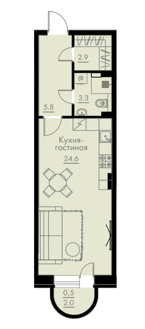 Общая площадь 37,10 м²