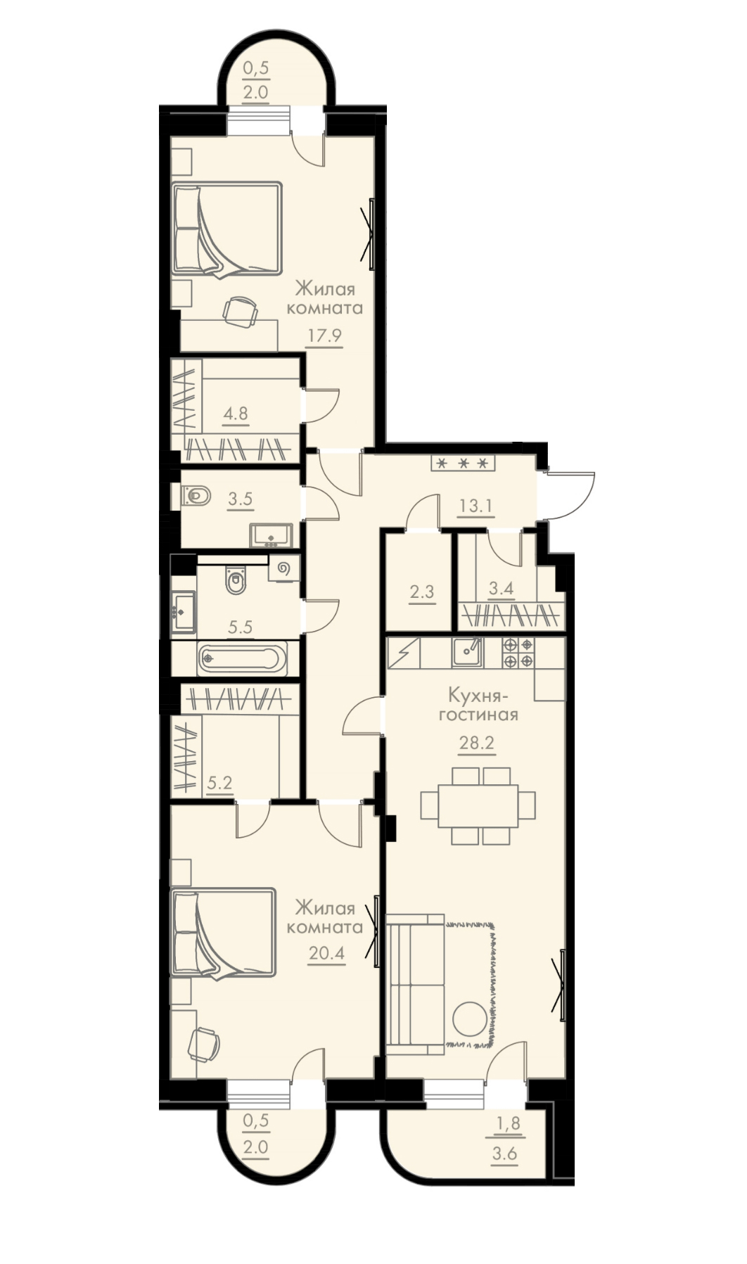 3-комнатная квартира